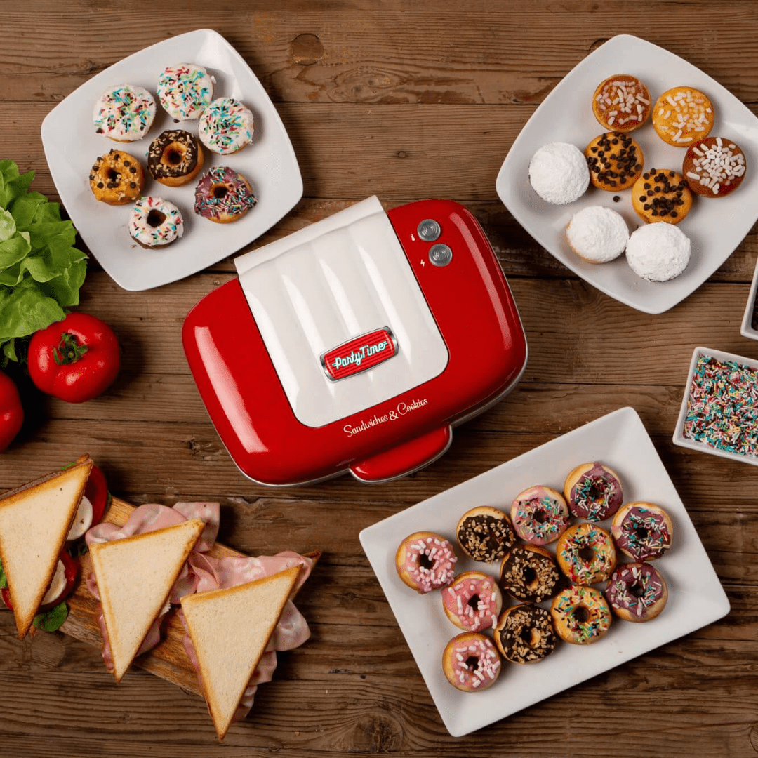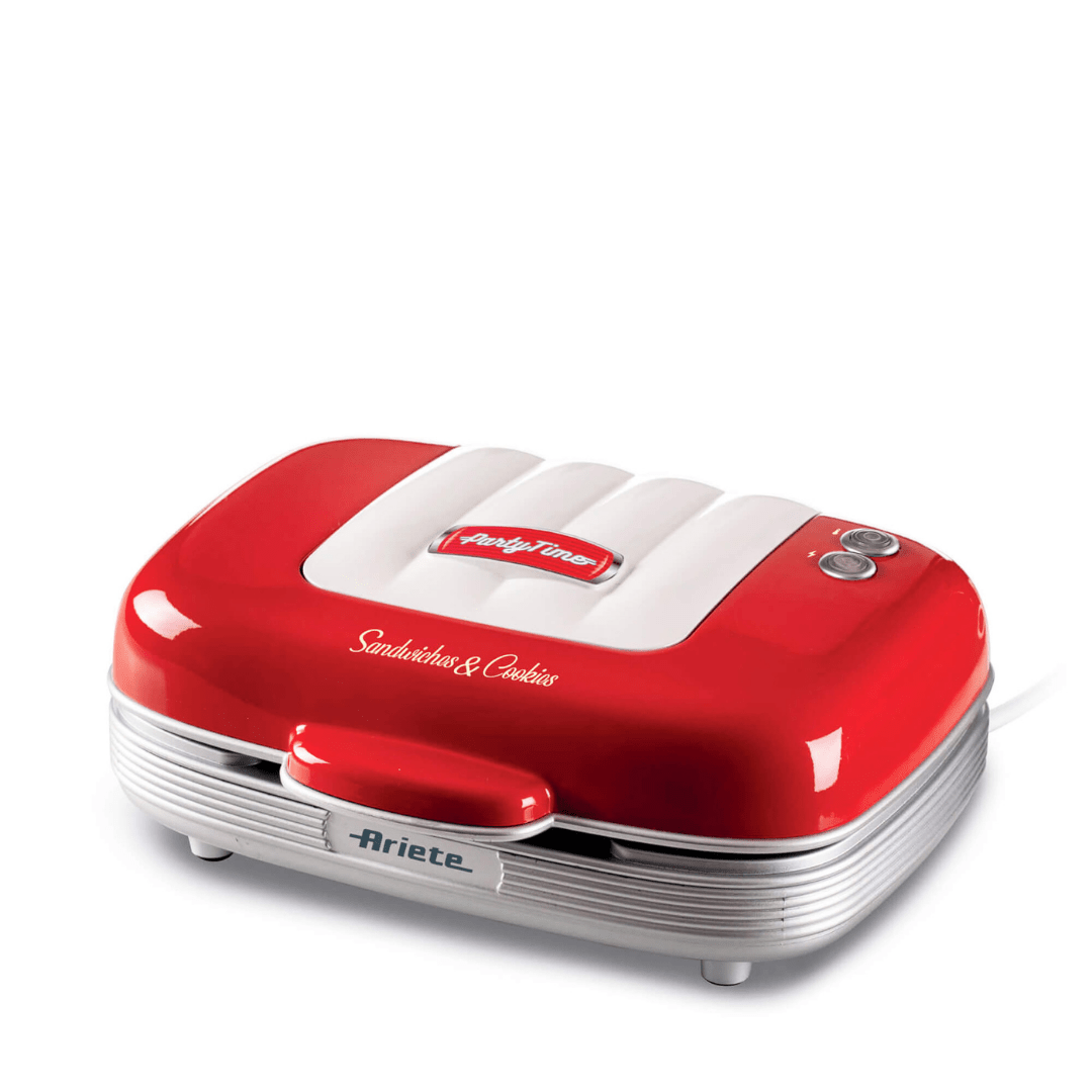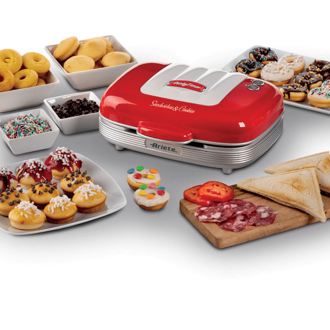 Multifunkcionalna električna ploča za muffine, krofne i sendviče, s jedinstvenim dizajnom American Dinersa iz 1950-ih. Idealno za pripremu slatkih i slanih zalogaja sa radošću. Zabavljajmo se uz Party Time Ariete!