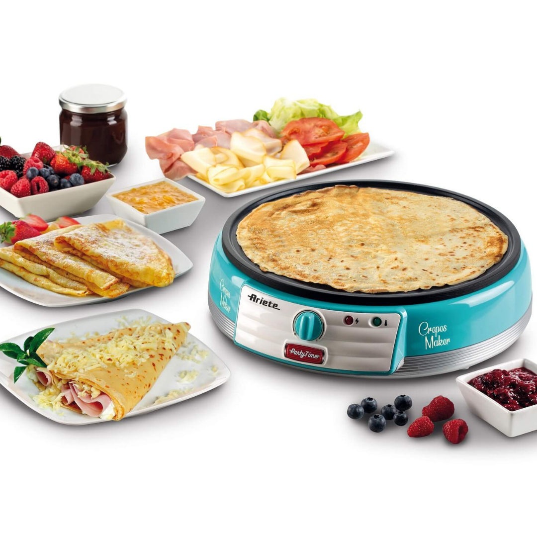 Svijetloplava električna ploča za palačinke s jedinstvenim dizajnom American Dinersa iz 1950-ih. Zabavljajmo se uz Party Time Ariete!
