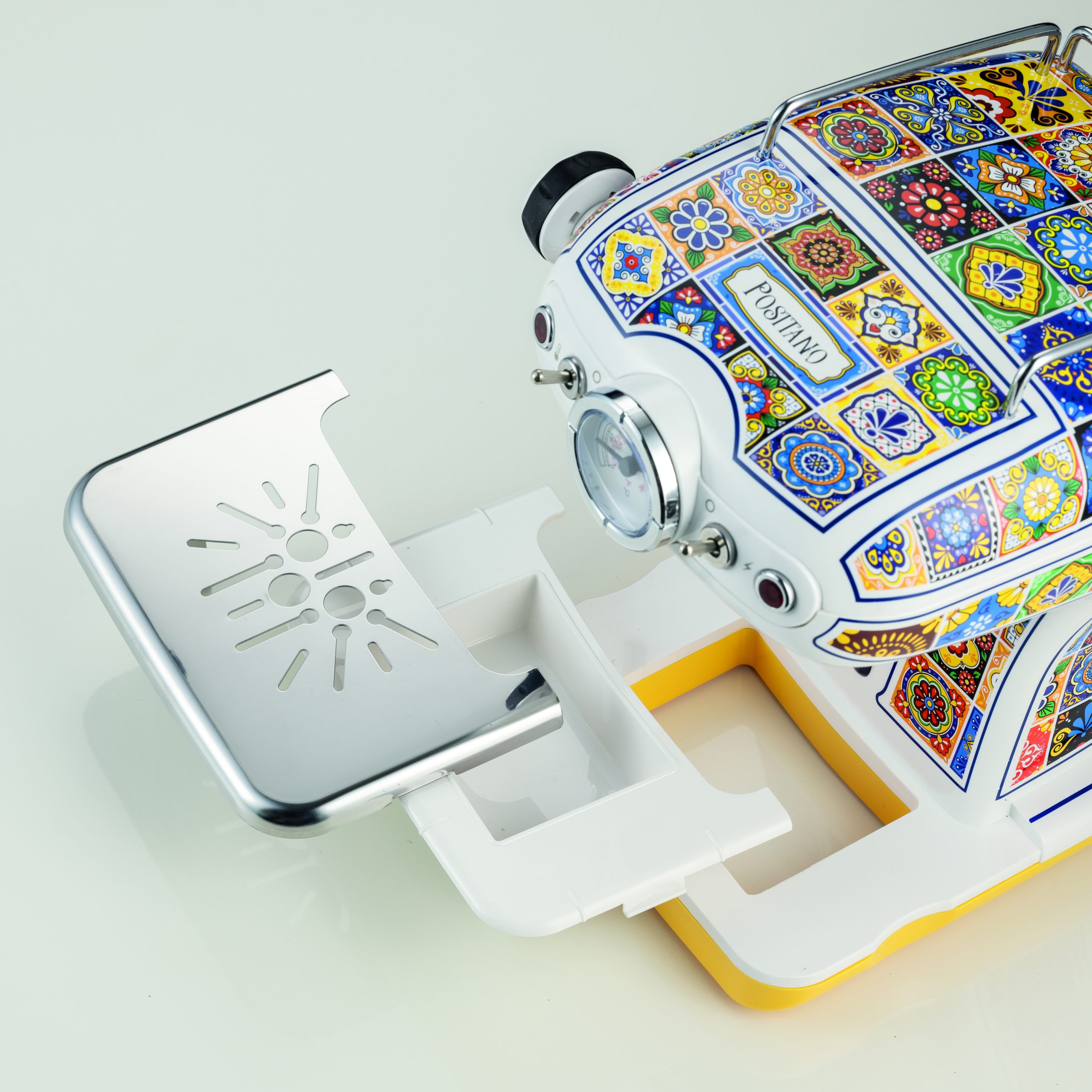 Espresso aparat za kafu Positano ima elegantan dizajn, obogaćen metalnim završnim detaljima. Sa snagom od 850 W, pritiskom od 15 bara, držačem filtera za kapsule i mljevenu kafu (za 1 i 2 šoljice), uklonjivim poslužavnikom i rezervoarom za vodu, ovaj aparat, koji ujedno služi i za pripremu kafe i kapućina, omogućava vam da uživate u kremastim i intenzivnim kafama i kapućinima kod kuće, kao u omiljenom kafiću.